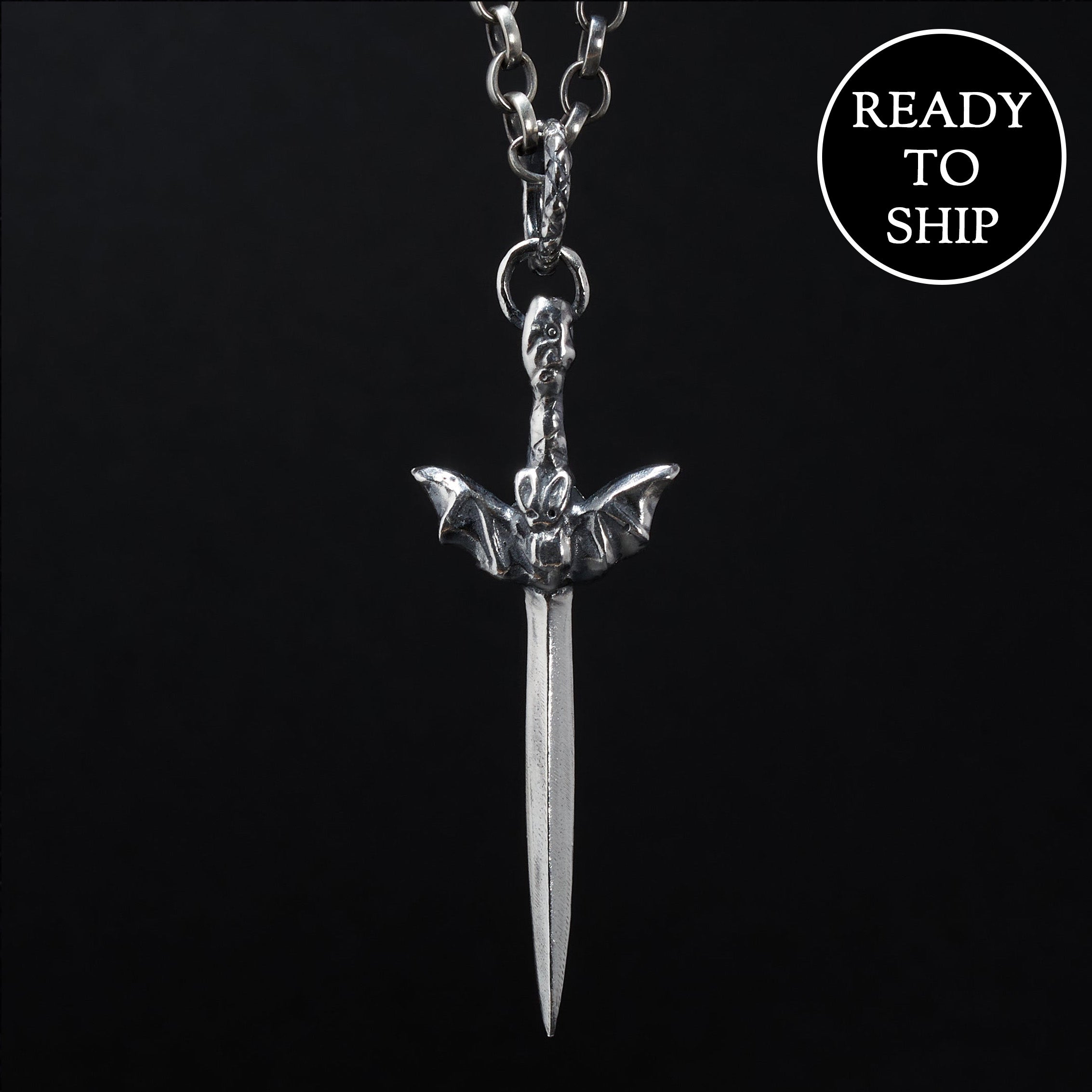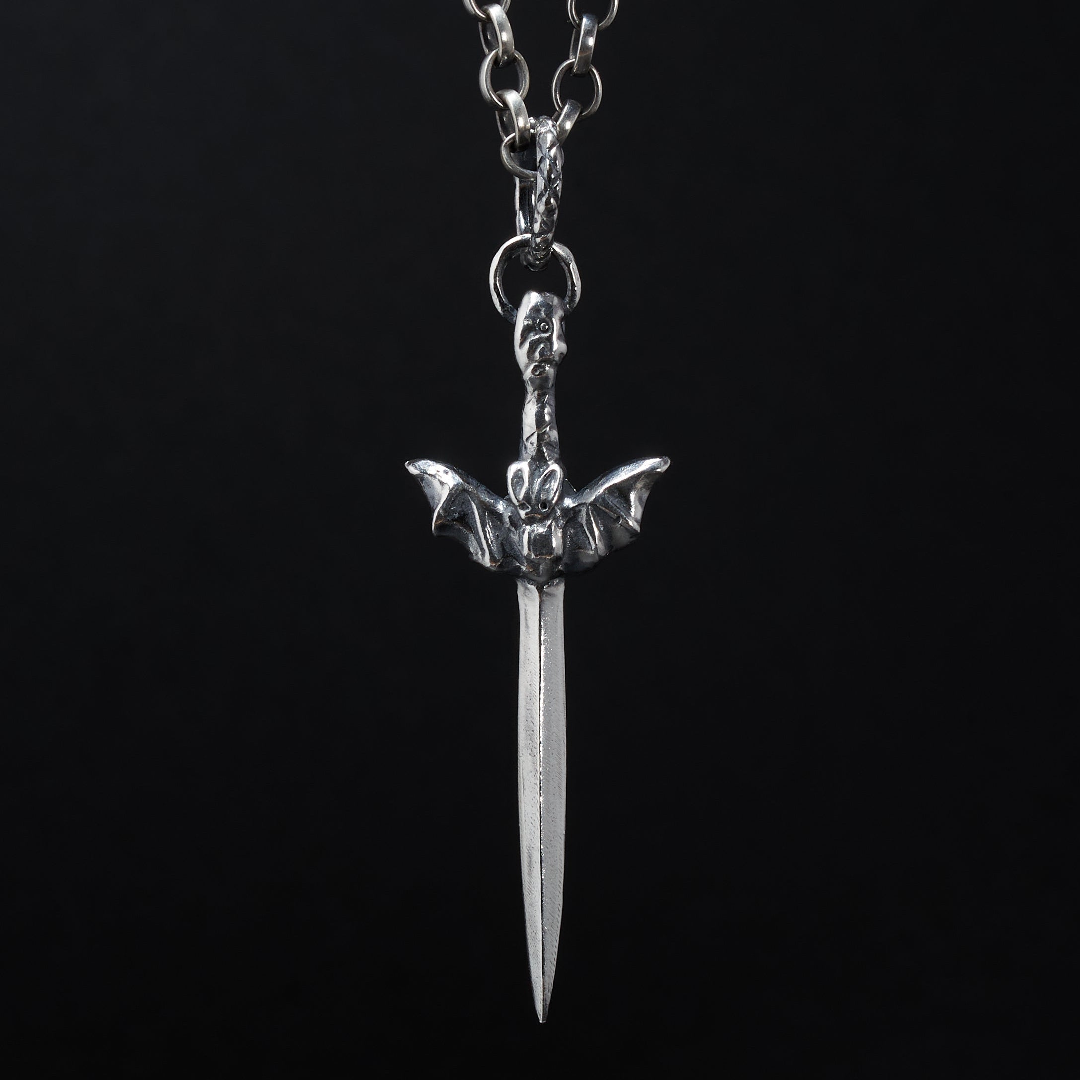 The Magic: A hilt made of a snake head, a cross guard that is a bat. Born of a deep adoration of bats, any jewellery I add a bat to is  imbued with love, awe and respect for these winged wonders, the only mammal capable of true flight.