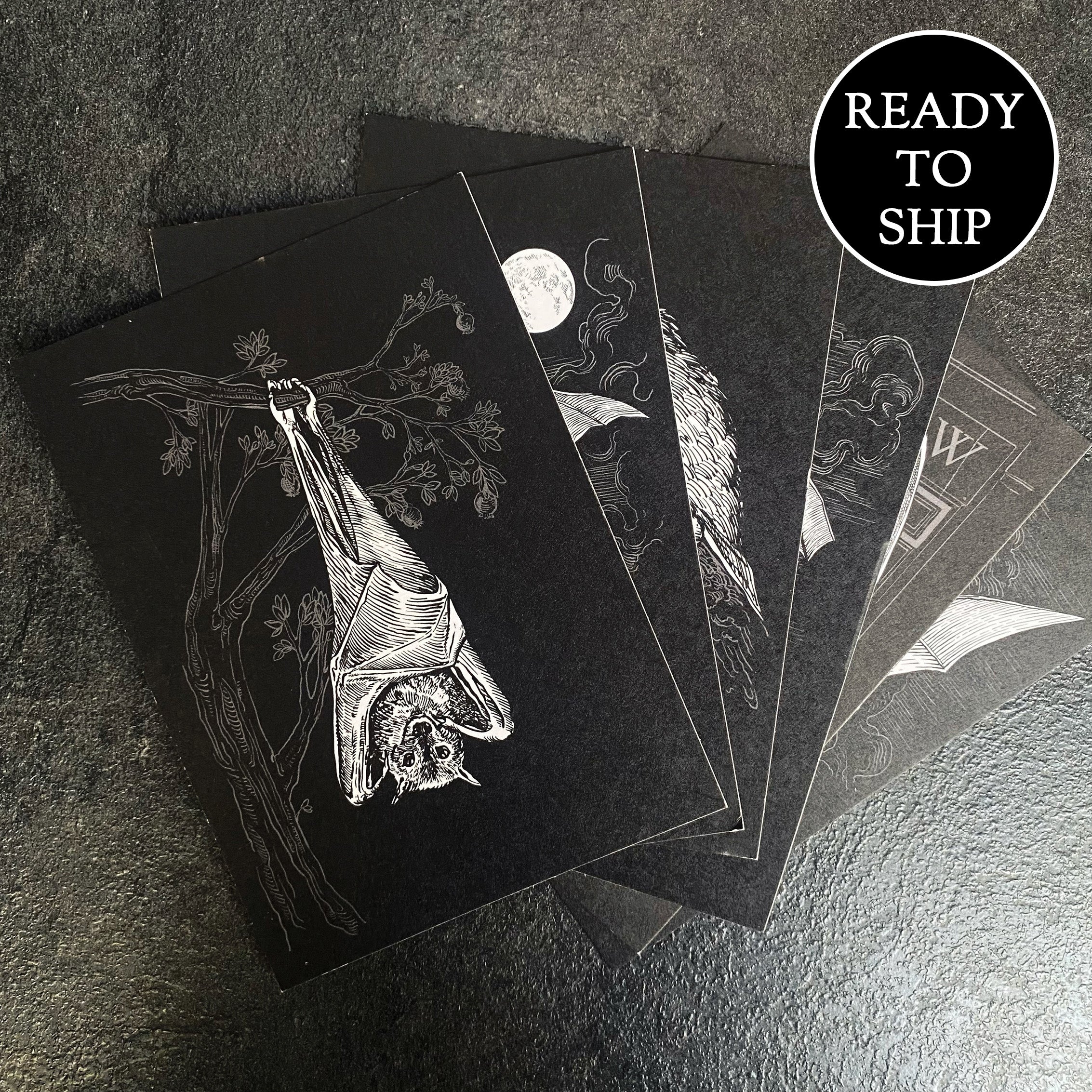 Gothic Bats Illustrated Postcard Set
