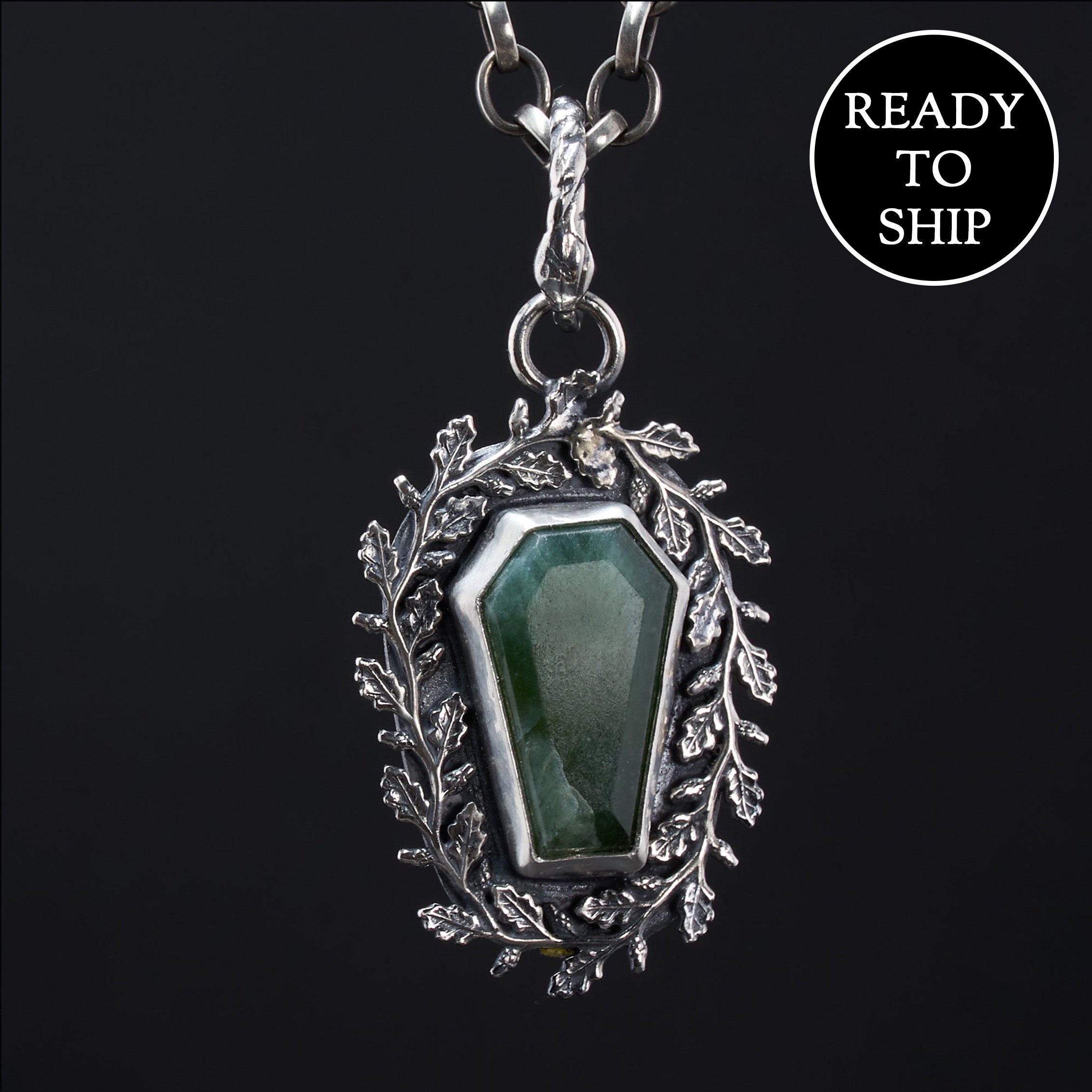 Serpentine Coffin Oak Leaf Pendant with Chain - OOAK