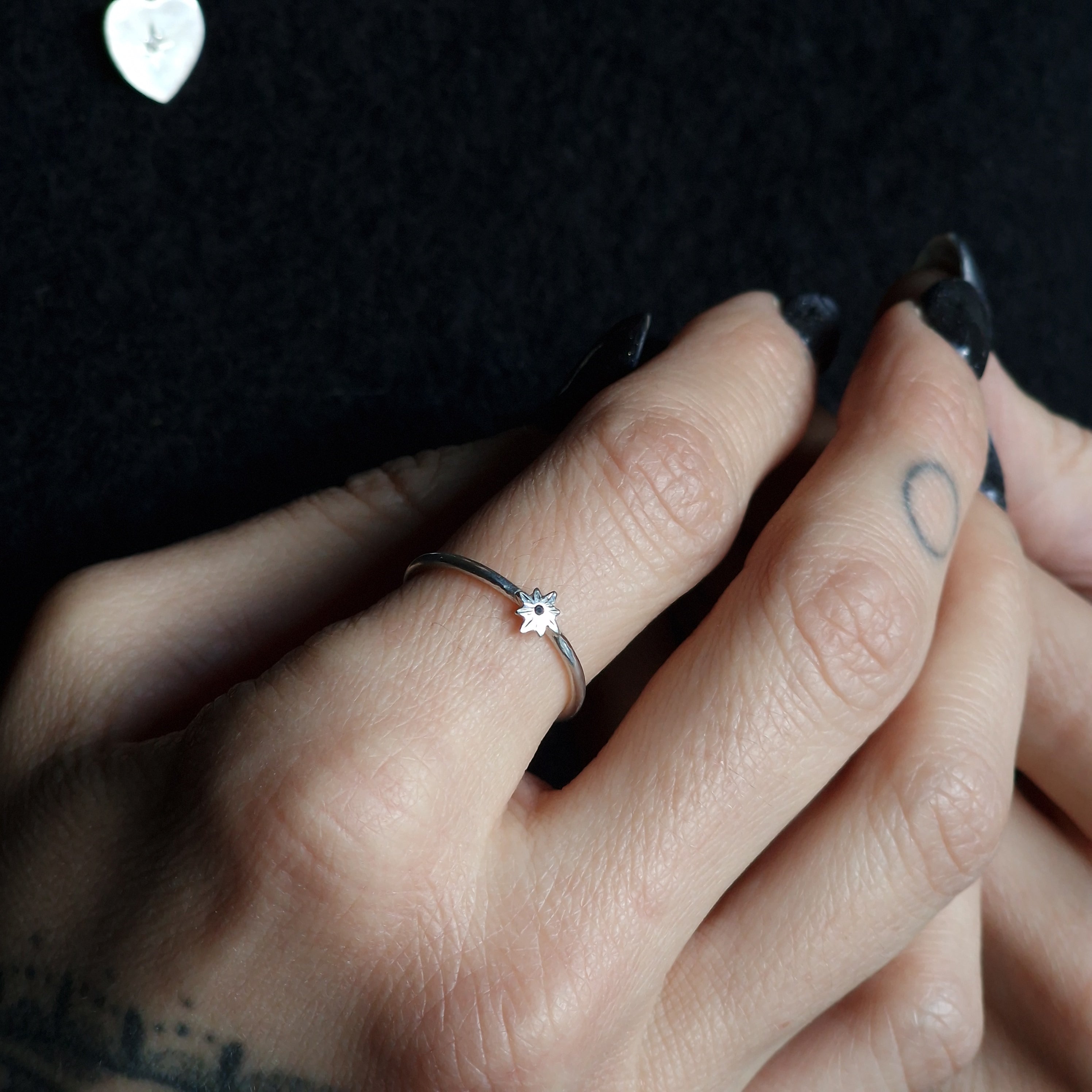 The Magic: A tiny little star to bring hope and light to your every day, a black diamond offers protection and grounding. Pair it with your favourite stackers to add a quiet spark of courage to your hand.