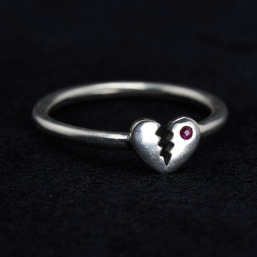 Ruby Broken Heart Ring in Silver